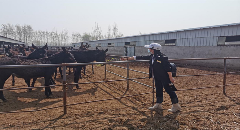 上午10点40分,大家来到第一站,聊城著名驴产业基地--高唐县。家人们兴致勃勃参观了三分会理事马骁总的阿多宝驴产业养殖基地,健硕的黑毛驴似乎也在期待家人们的到来,活蹦乱跳,瞬间点燃了家人们的热情,在马总细致的讲解下,大家对毛驴的品种,分类,养殖知识,有了更全面的了解,更是对毛驴的奉献精神所感动,爱跳舞的陈爱鹤美女更是跟可爱的毛驴来了个亲密互动!