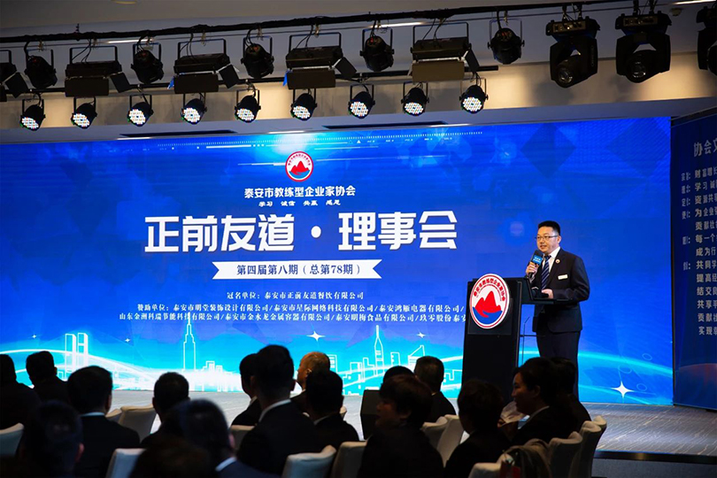 会议由来自于五分会的张向农主持,泰安市正前友道餐饮有限公司、泰安市明堂装饰设计有限公司、泰安市星际网络科技有限公司泰安鸿雁电器有限公司、山东金洲科瑞节能科技有限公司、泰安市金水龙金属容器有限公司、泰安市明梅食品有限公司、玖零股份泰安公司友情赞助。